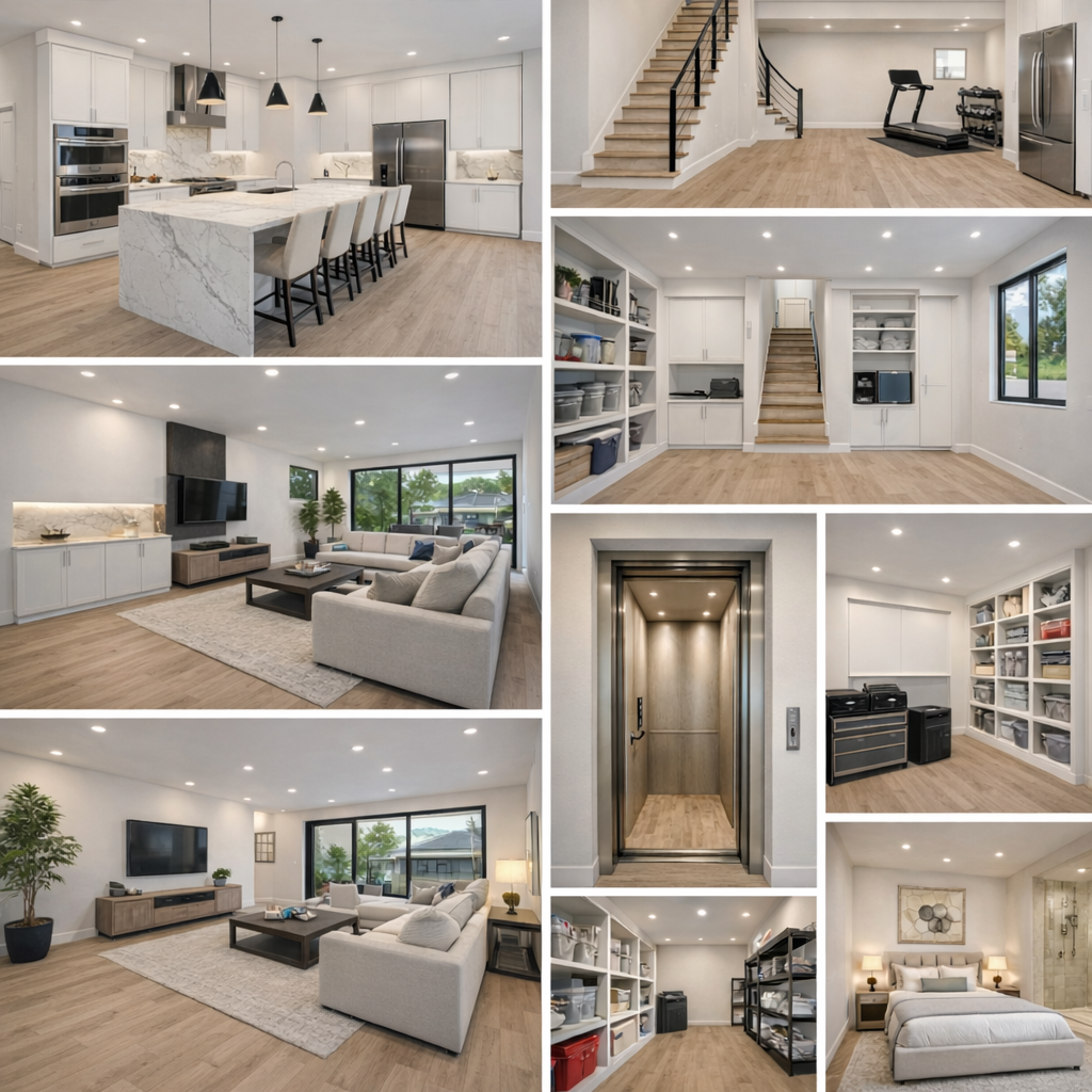 All models come standard with white marble countertops, custom flooring, upgraded trim, and custom fixtures.
